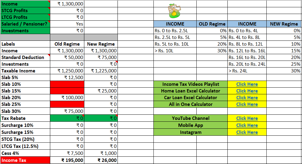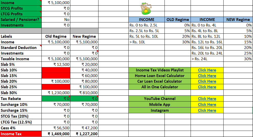 Use the Income Tax Calculator in Excel mentioned at the top of this Article, to calculate Income Tax with your ow numbers